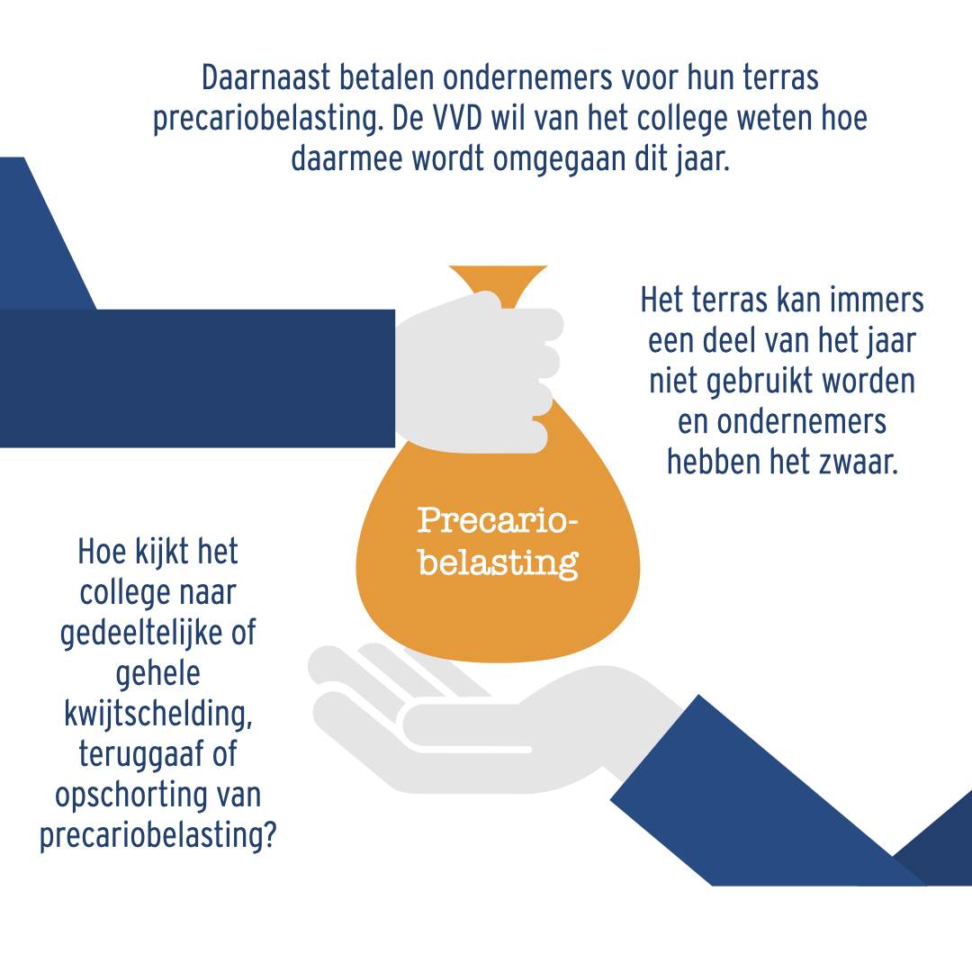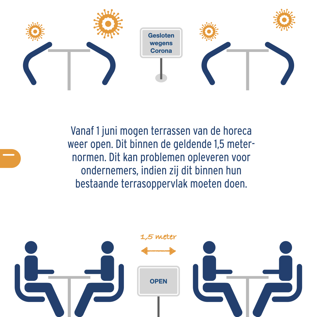 De VVD Goeree-Overflakkee heeft op 5 mei 2020 vragen gesteld aan het college over mogelijkheden om de horeca te ondersteunen. De sector is door de coronacrisis uitzonderlijk hard getroffen. De vragen richten zich op verruiming van de terrassen, regelingen rondom de precariobelasting en mogelijke andere opties. Lees meer in onderstaande infographic.